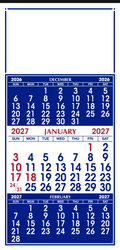 This commercial calendar provides a continuous view of past, present, and future months at a glance, making scheduling and planning easier than ever. The previous and upcoming months are displayed in blue, allowing the current month to stand out in white for quick and clear reference. The SFI® label means that materials used for this product have been responsibly sourced.