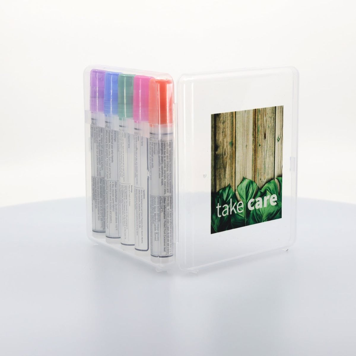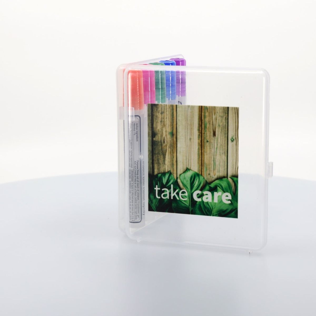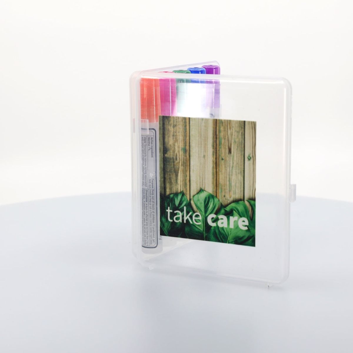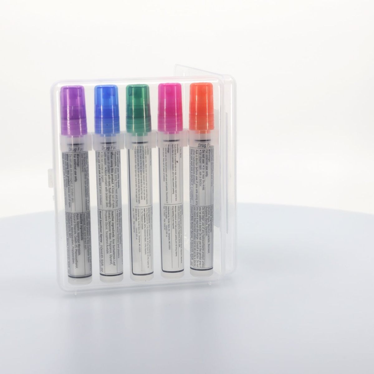 - Clear travel case includes .33oz. pen sprays of after sun, insect bite relief, insect repellent, hand sanitizer and SPF30 sunscreen.