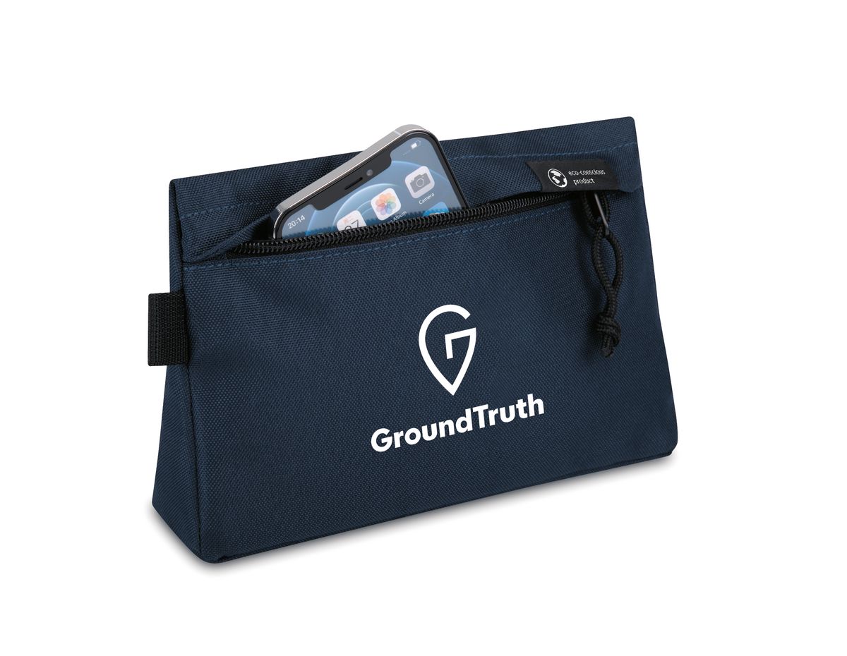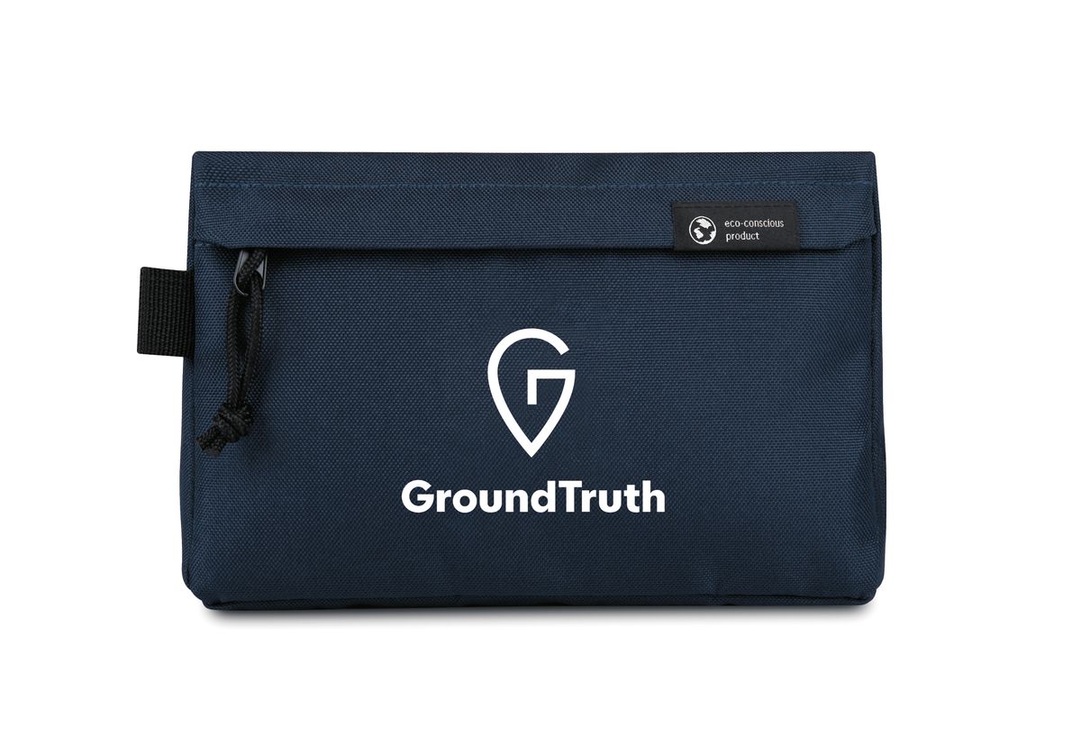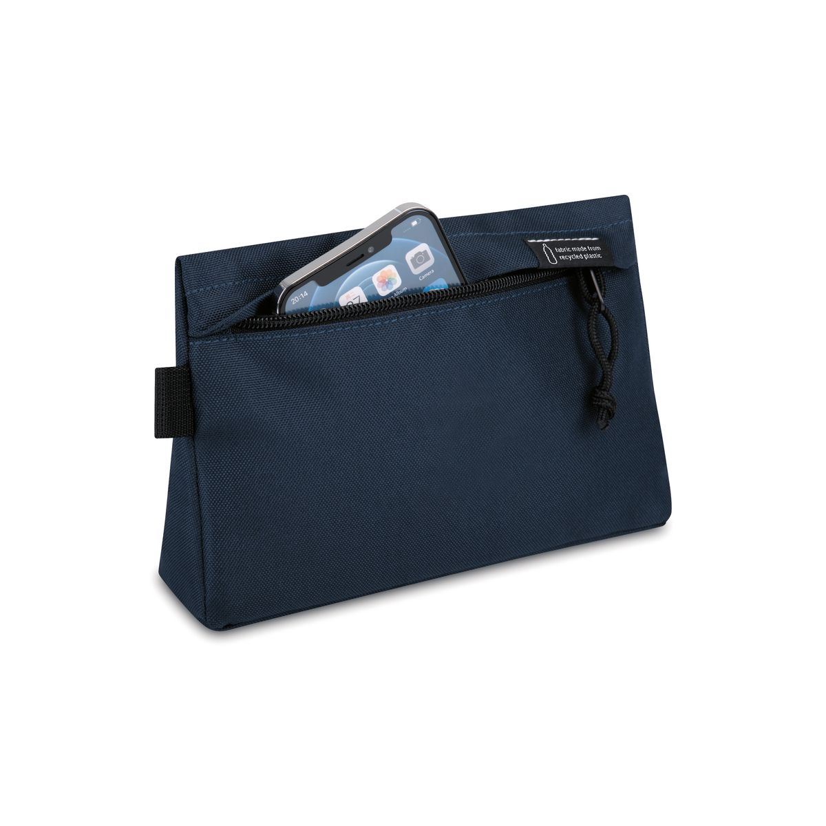 - A modern and sustainable update to a classic pouch using recycled fabric and webbing made from plastic bottles