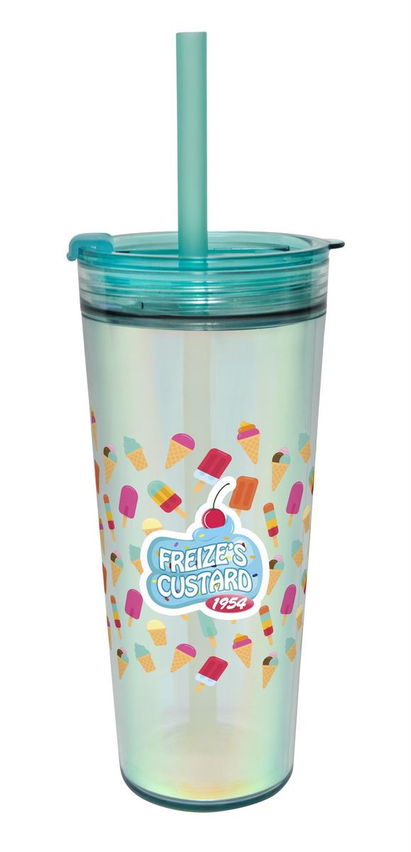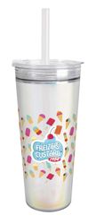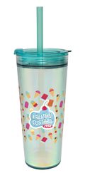 This trendy tumbler with an iridescent insert brings the style without breaking the bank. Its double-wall construction helps reduce condensation, and the screw-on, spill-resistant lid showcases a flip-top opening and a hole for included matching straw. This acrylic tumbler is perfect for travel, home, and outdoors. The Tumbler body and lid are made from 100% post-consumer acrylonitrile-styrene; the flip is made from 100% post-consumer polypropylene.